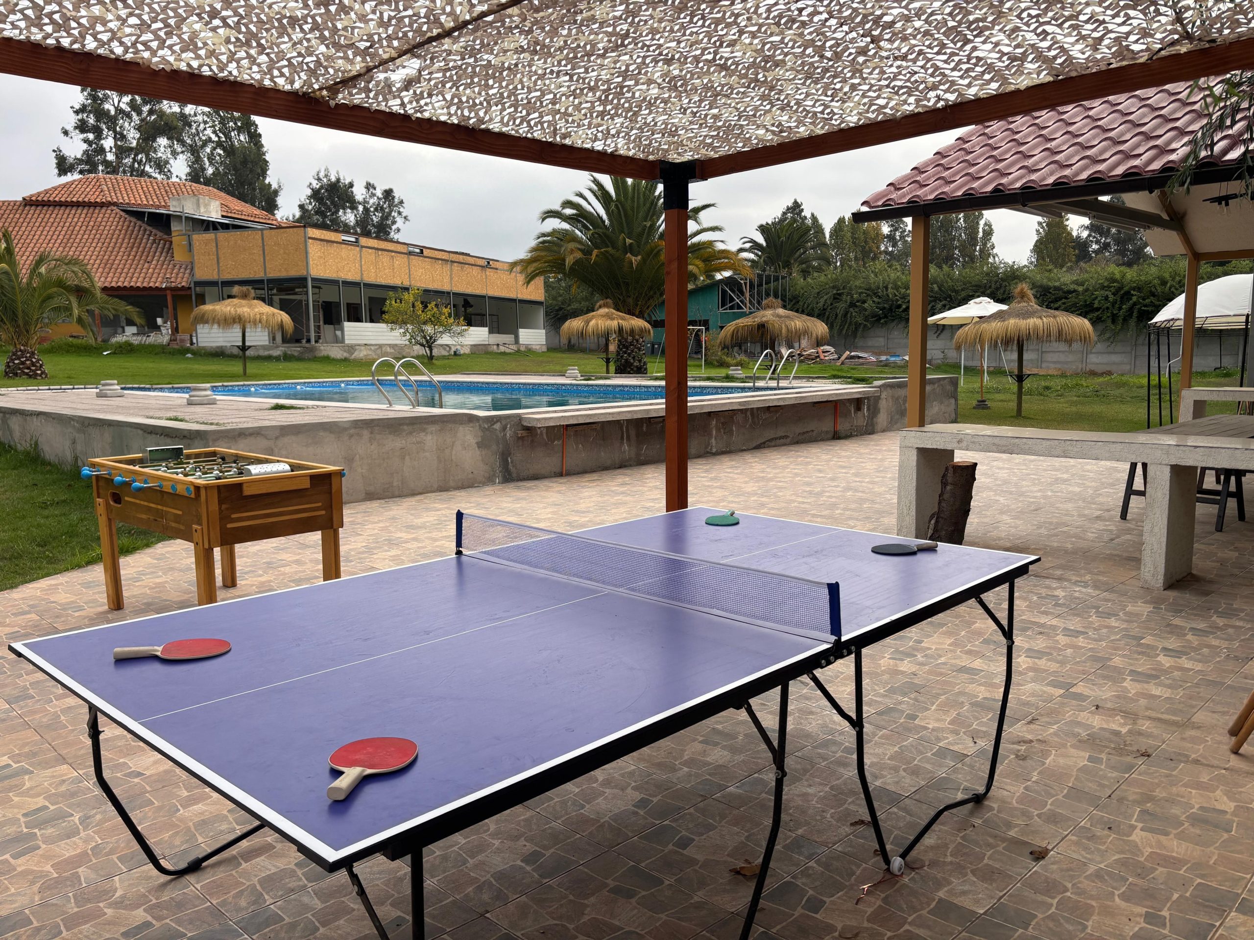 Nuestro quincho techado es el lugar perfecto para reuniones y celebraciones en cualquier época del año. Equipado con parrilla y mobiliario adecuado, es ideal para asados, comidas y encuentros familiares o corporativos.